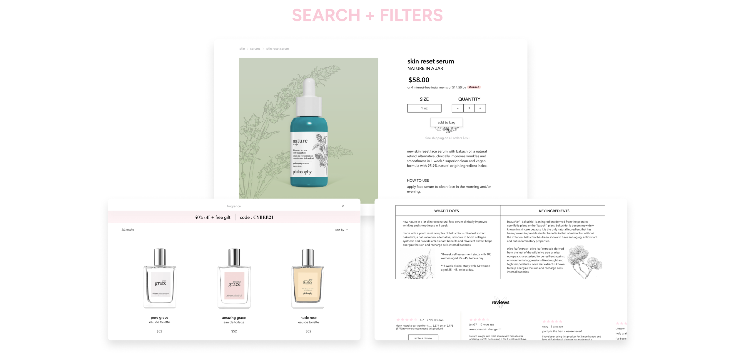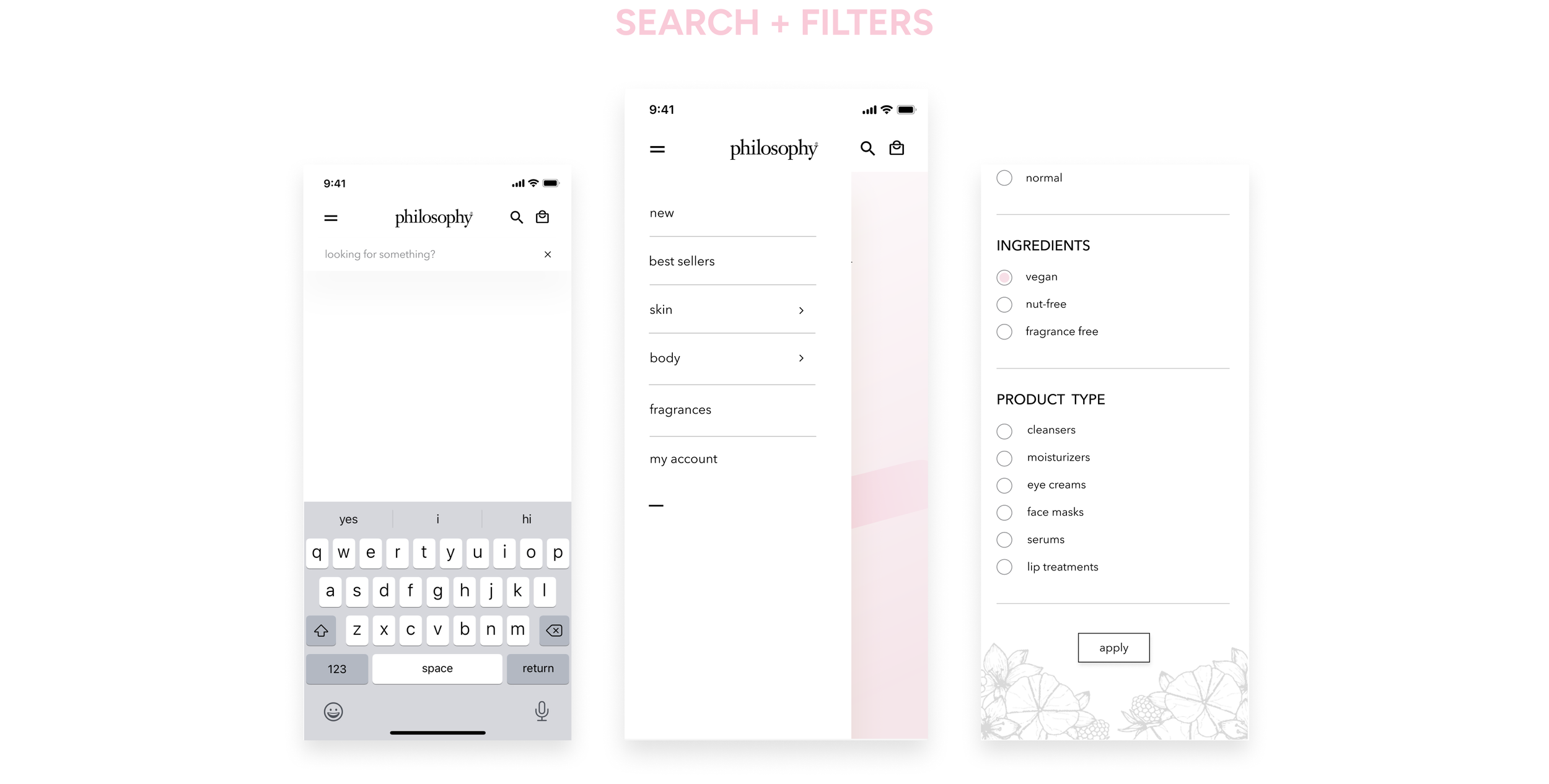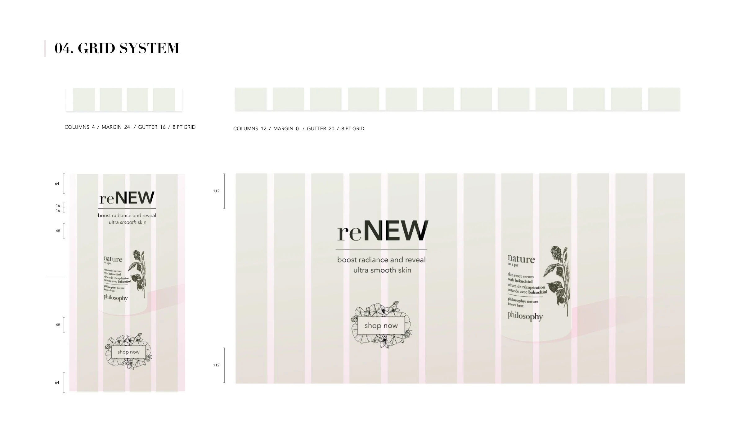 This website redesign highlights philosophy's mission to use the power of nature to inspire beautiful skin, through the use of soft colors